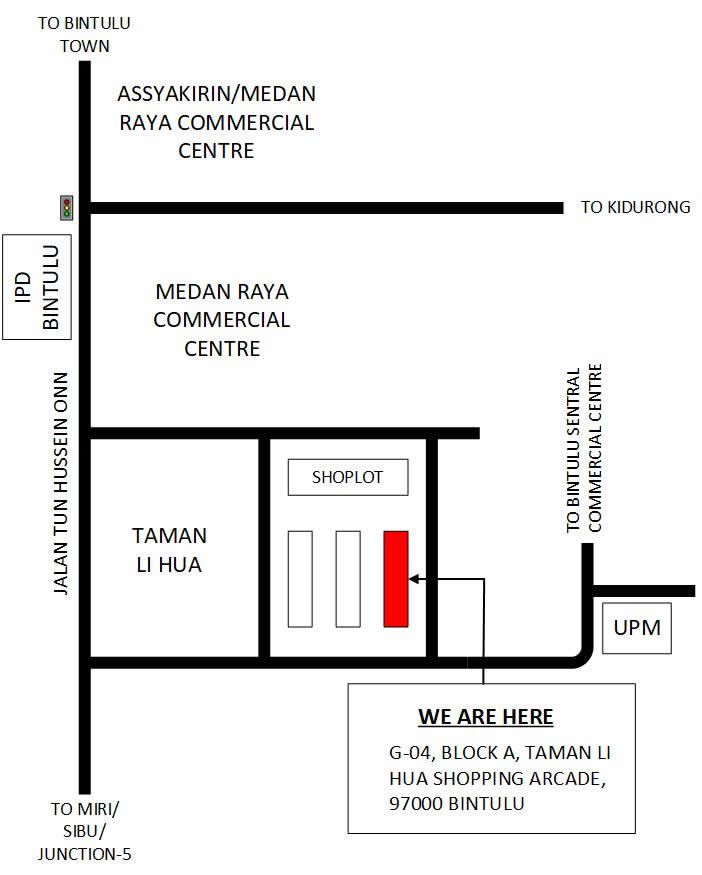 G-04, Ground Floor, Block A, Taman Li Hua Shopping Arcade, 97000 Bintulu, Sarawak, Malaysia.